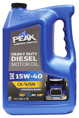 PEAK® Synthetic Blend Diesel Engine Oil is as tough as the vehicles and environments in which they operate. PEAK® 15W-40 CK-4/SN Synthetic Blend Diesel Engine Oil is designed to deliver on performance in four key areas:
